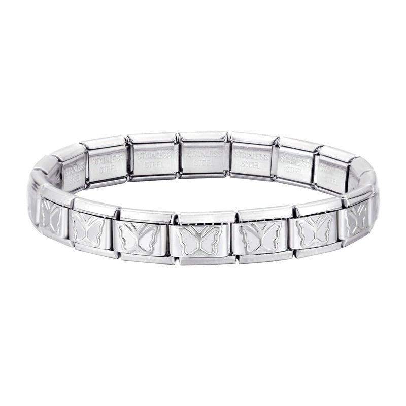 Stainless Steel 18 Link Shiny Italian Charm Starter Bracelet (BUTTERFLY Links)- Classic 9mm Size
