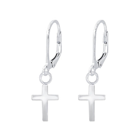 Children's Sterling Silver Cross Lever Back Earrings